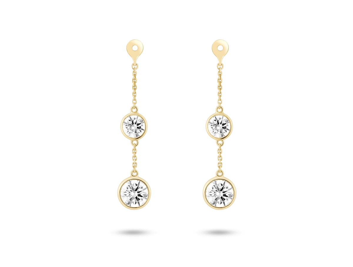 Lab-Grown Diamond 1½ct. tw. Round Brilliant Double Drop Bezel Ear Jacket Earrings | White - White / 14k Yellow Gold