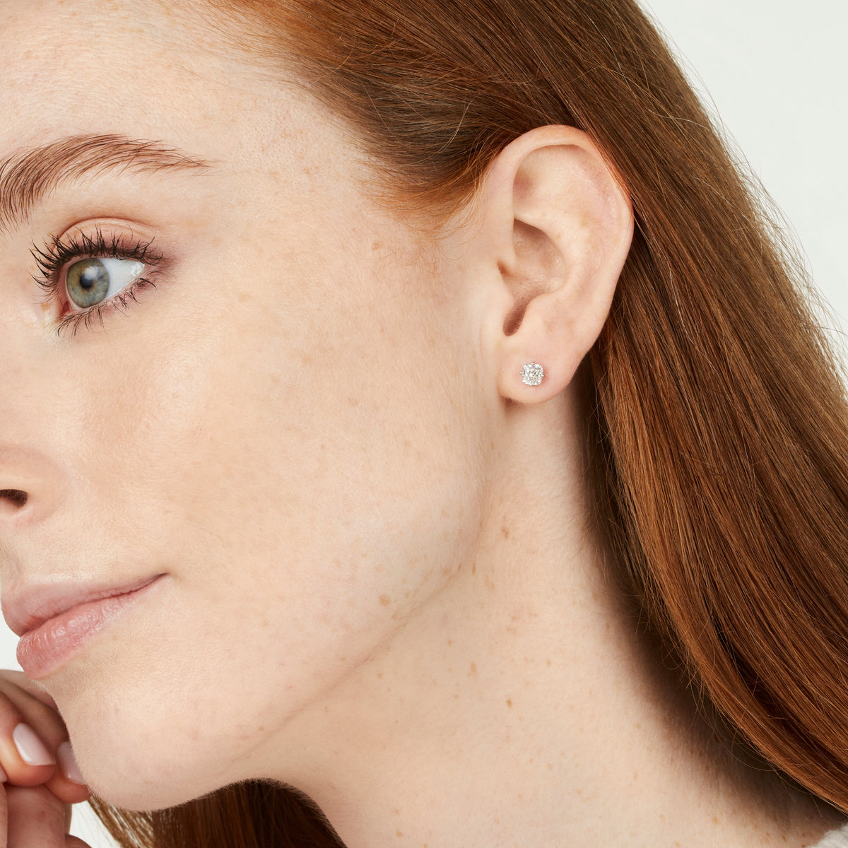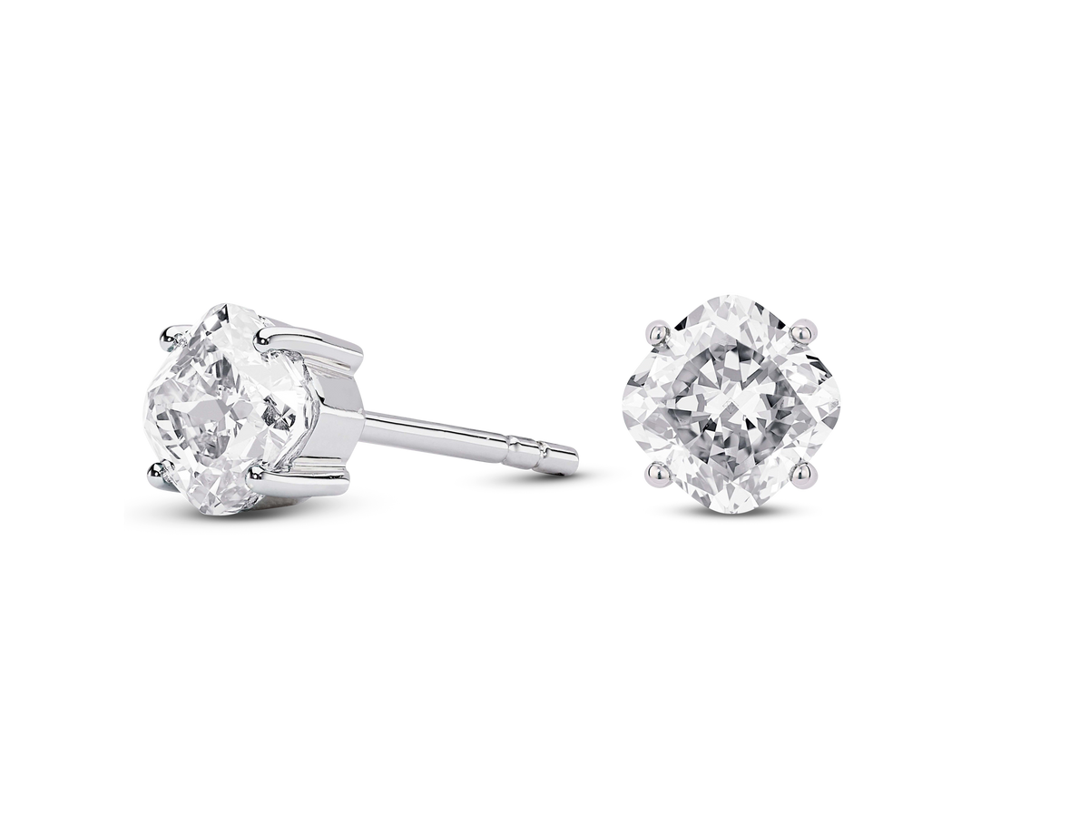 Find your everyday classic jewelry essential in our cushion cut collection. Being the perfect blend between a square and round cut, cushions are known for their depth of sparkle. Choose between our signature icy blue, blush pink or radiant white cushion cut studs set in 14k gold.