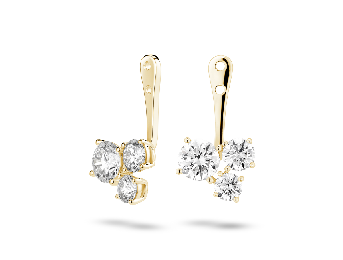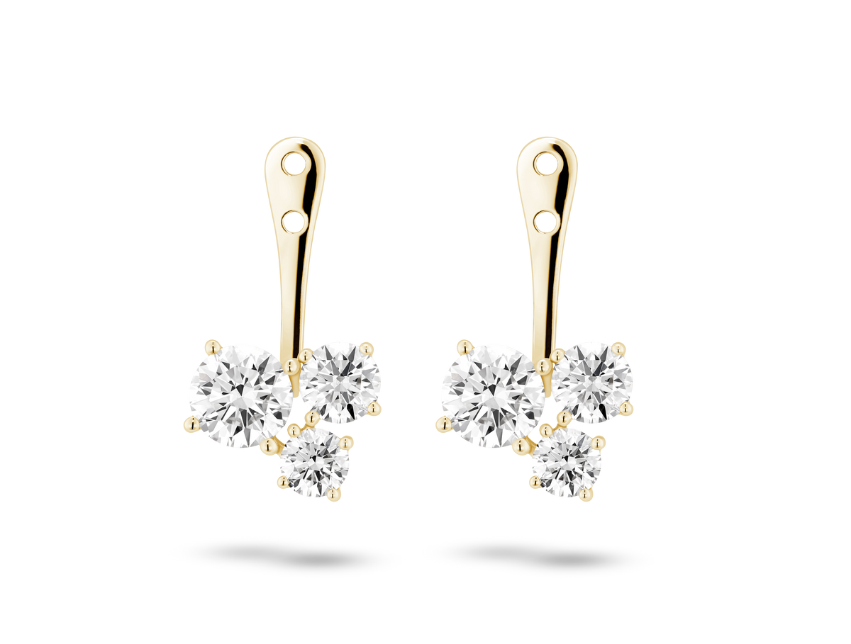 Hand crafted in 14k gold, each earring jacket is ⁸⁄₉ct.tw. Our stones are graded at VS+ clarity, Very Good cut and Near Colorless, grown from 100% renewable wind energy.