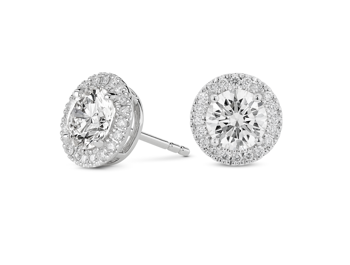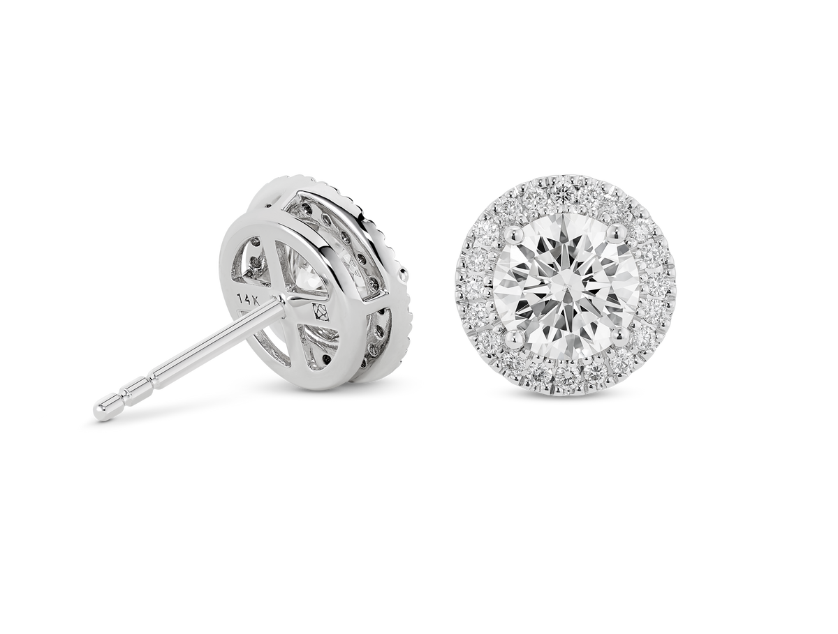 Make a big impact in these 2 carat total weight halo earrings. Each individual earring has a ⁸⁄₉ carat center stone surrounded by pavê lab-grown diamonds. With the stunning sparkle of our white lab-grown diamonds you’ll be sure to get heads turning, but don’t just take our word for it, check out our 5-star reviews.